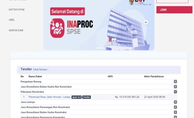 Tender Jalan Amowe–Lanipa Rp15,3 Miliar Diserbu 9 Perusahaan, Persaingan Kian Ketat Jelang Penetapan Pemenang