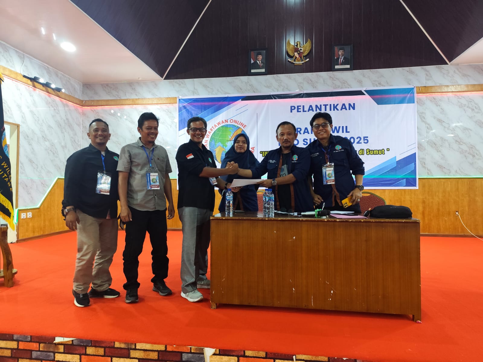 Penyerahan SK dilakukan langsung oleh Pengurus Pusat IWO, Ketua Umum H. Teuku Yudistira Adi Nugroho, M.I.Kom bersama Wakil Sekretaris Aymar. Prosesi penyerahan berlangsung melalui Ketua Pengurus Wilayah (PW) IWO Sumut, Amri Abdi, SE, M.I.Kom, kepada Ketua PD IWO Deli Serdang, bertempat di Balai Diklat Keagamaan Medan, Jalan TB Simatupang, Kecamatan Medan Sunggal, Kota Medan, Selasa (20/8/2025).