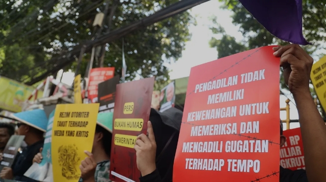 “Gugatan sebesar Rp200 miliar ini merupakan upaya pembungkaman dan pembangkrutan media. Hari ini Tempo yang digugat, tapi ke depan bisa saja media lain mengalami hal serupa,” ujar Nany dalam orasinya.