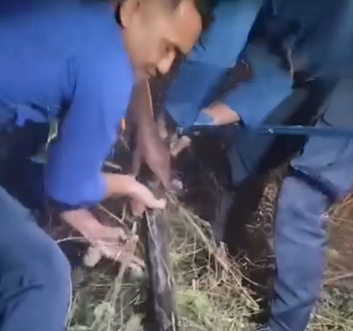 Dalam video yang diterima redaksi Trennews.id, terlihat tim Damkar tiba di lokasi dan langsung melakukan penyisiran. Ular tersebut tampak keluar dari sebuah lubang tanah, dan petugas dengan sigap berhasil menariknya dari persembunyiannya.