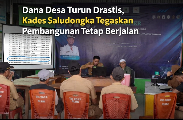 Lasusua, TrenNews.id — Kepala Desa Saludongka menegaskan bahwa penurunan signifikan alokasi Dana Desa (DD) tahun anggaran 2026 tidak akan menghentikan roda pembangunan desa. Tahun ini, Desa Saludongka menerima Dana Desa sebesar Rp373.456.000, turun jauh dibandingkan tahun sebelumnya yang mencapai sekitar Rp1,1 miliar.