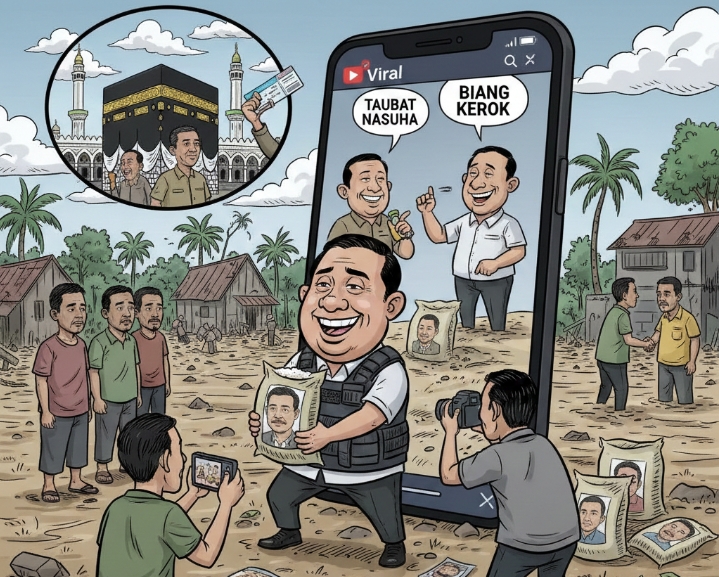 Ironi ini bukan hanya milik pejabat lapangan. Di tingkat pusat, kita menyaksikan menteri saling sindir di ruang publik. Seruan untuk taubat nasuha dan tudingan mencari biang kerok justru memperlihatkan betapa rapuhnya orientasi kepemimpinan dalam menghadapi tragedi kemanusiaan. Ketika kabinet bersilang suara, publik melihat ketidakmampuan negara menampilkan solidaritas yang seharusnya menjadi fondasi penanganan bencana.