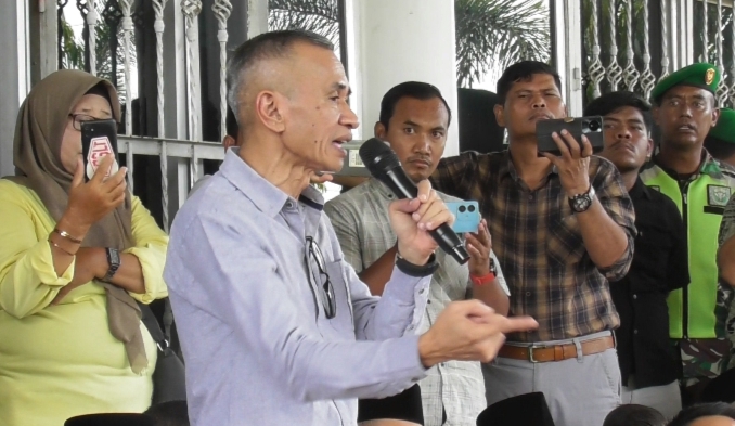 Ketua DPRK Aceh Singkil, Amaliun saat menanggapi tuntutan massa aksi. Ia membongkar alasan keterlambatan pengesahan APBK tahun 2026 di Aceh Singkil.