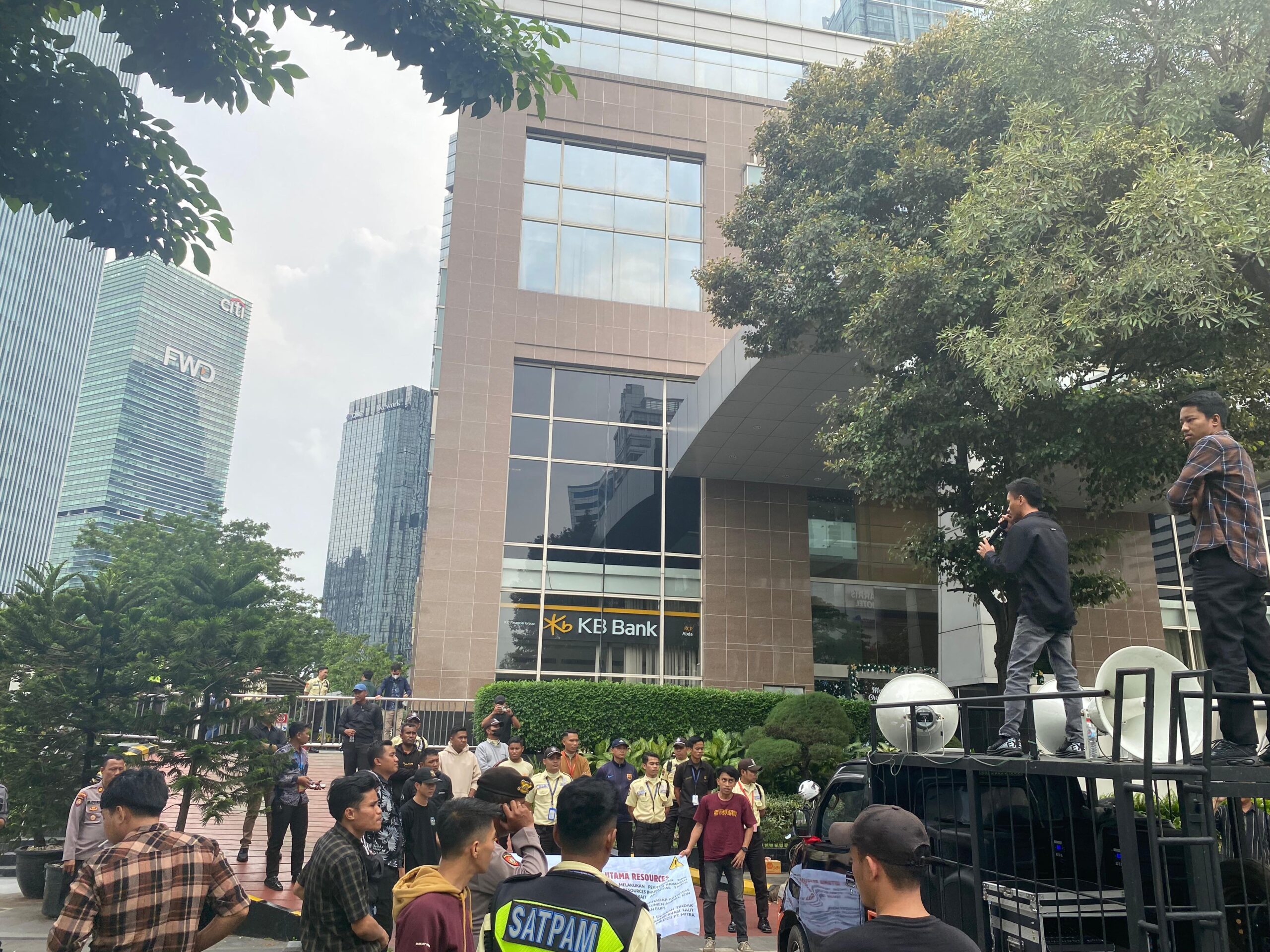 Kericuhan terjadi saat massa mencoba menerobos barikade aparat dan memaksa mendekati pintu utama Plaza Asia untuk meminta perwakilan perusahaan memberikan penjelasan. Aparat keamanan yang berjaga menahan massa hingga terjadi aksi saling dorong dan ketegangan.