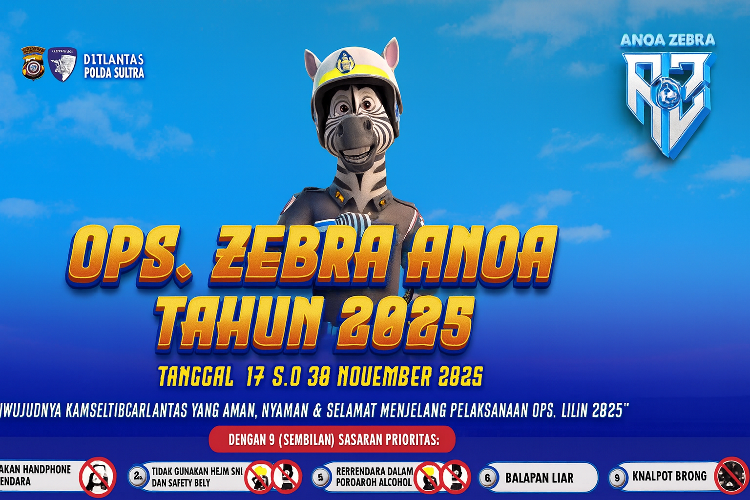 Kendari, TrenNews.id – Direktorat Lalu Lintas (Ditlantas) Polda Sulawesi Tenggara resmi menggelar Operasi Zebra Anoa 2025 yang berlangsung selama 14 hari, mulai 17 hingga 30 November 2025. Operasi ini digencarkan untuk mendukung terciptanya keamanan, keselamatan, ketertiban dan kelancaran lalu lintas (Kamseltibcarlantas) menjelang pelaksanaan Operasi Lilin 2025.