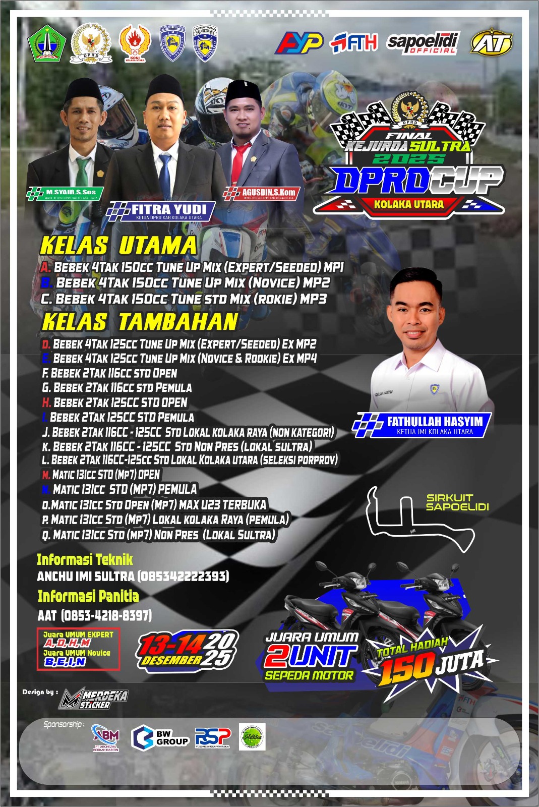 Lasusua, TrenNews.id – Atmosfer balap motor di kawasan Indonesia Timur dipastikan memanas. Final Kejurda Sultra 2025 DPRD Cup Kolaka Utara bakal jadi ajang pertarungan sengit para rider pada 13–14 Desember 2025 di Sirkuit Semi Permanen Sapoelidi Lasusua. Bukan cuma pembalap lokal, para juara nasional dipastikan turun gunung meramaikan laga pamungkas musim ini.