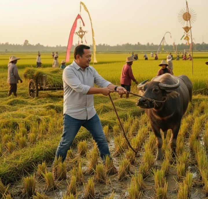 Pagi hari di persawahan selalu dimulai dengan suara gemericik air, langkah kaki petani, dan hembusan napas kerbau yang menyatu dengan kabut tipis. Tak ada suara bising, hanya irama alam yang bekerja bersama manusia. Proses membajak memang memakan waktu lebih lama, namun ada kesabaran dan kedekatan yang terbangun di sana.