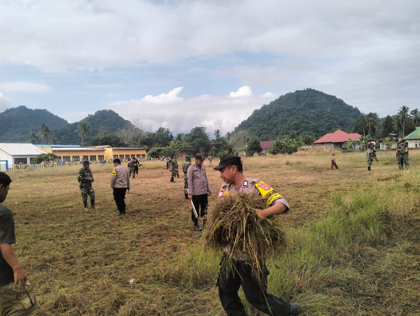 Jelang HUT RI ke-80, TNI-Polri dan Warga Batu Putih Kompak Bersihkan Lapangan Upacara