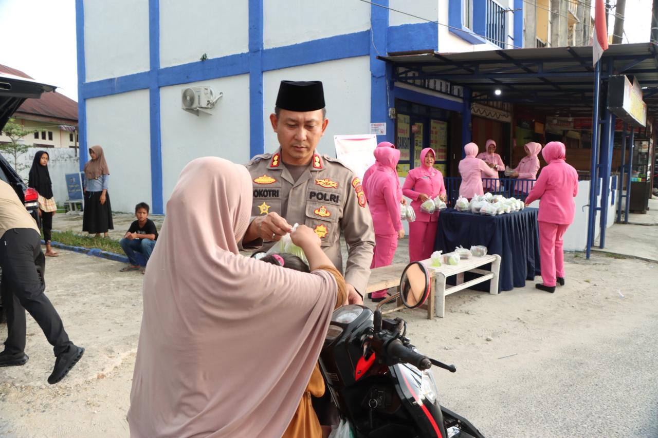 Kapolres Aceh Singkil dan Ketua Bhayangkari Bagikan Ratusan Paket Takjil