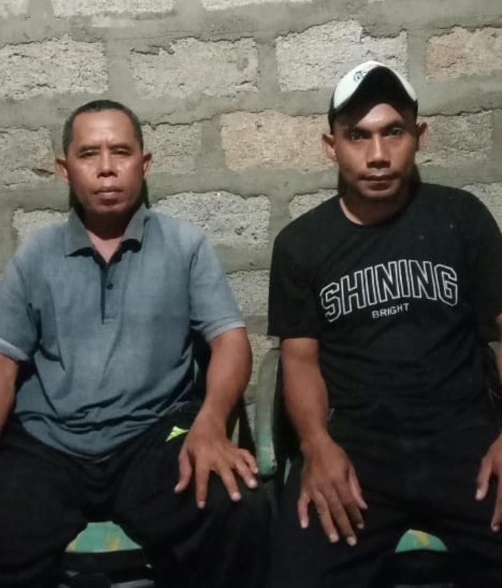 Tajudin bersama mertua usai rembuk keluarga untuk agenda demonstrasi ke Polsek Sambi Rampas Rabu mendatang.