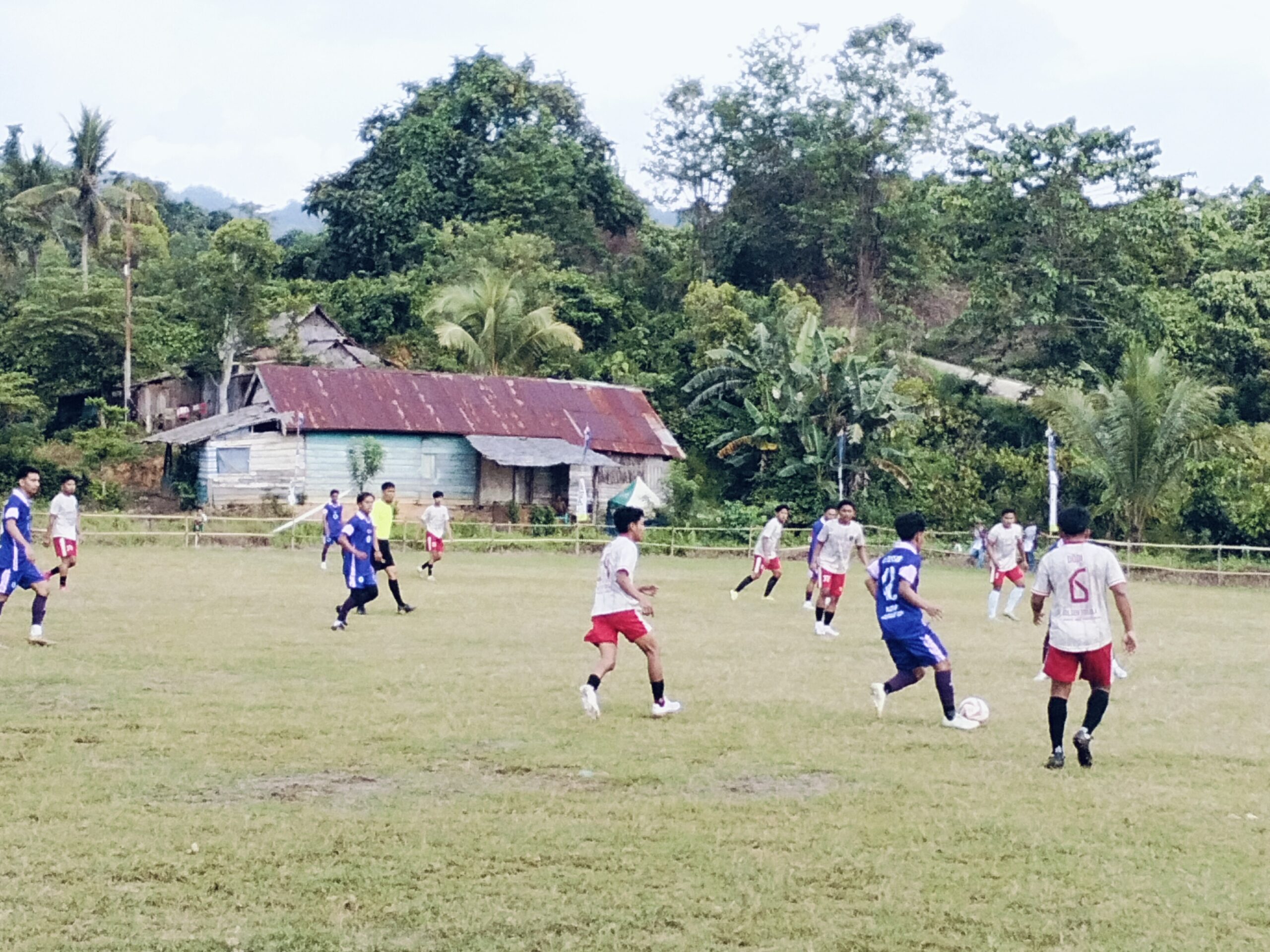 Pemain MD SPORT FC adu skill dengan pemain Wakanda FC di Turnamen Sepakbola MEOHAI CUP I Mosiku