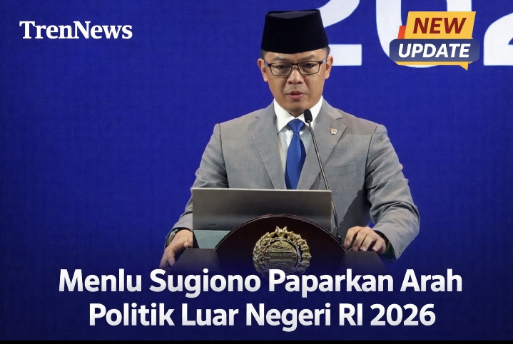 Jakarta, TrenNews.id — Menteri Luar Negeri Republik Indonesia, Sugiono, menyampaikan Pernyataan Pers Tahunan Menteri Luar Negeri (PPTM) 2026 yang memuat arah dan prioritas kebijakan politik luar negeri Indonesia sepanjang tahun 2026. Kegiatan tersebut digelar di Jakarta, Selasa (14/1/2026), dan dihadiri para duta besar negara sahabat, pejabat kementerian, serta perwakilan lembaga terkait.