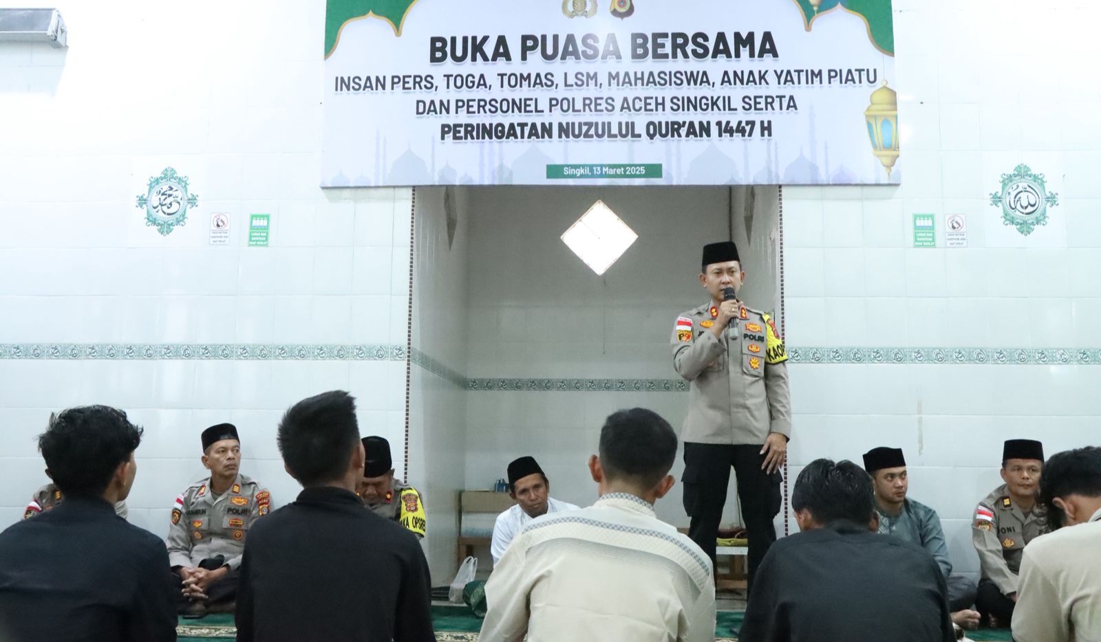 Kapolres Aceh Singkil AKBP Joko Triyono dalam sambutannya menyampaikan bahwa peringatan Nuzulul Qur’an ini merupakan momentum penting untuk meningkatkan keimanan sekaligus mempererat hubungan silaturahmi antara Polri dengan masyarakat serta insan pers.