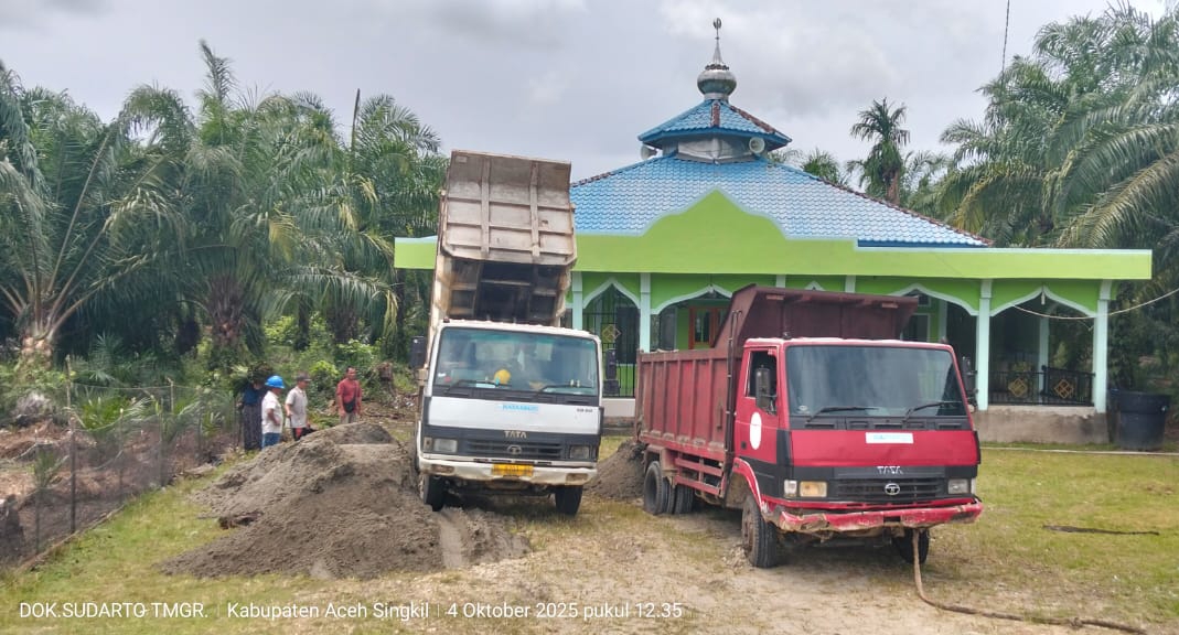 Aceh Singkil, TrenNews.id – PT Nafasindo kembali menyalurkan bantuan material pasir/Tanah Kering untuk pemadatan tanah di area Tempat Pemakaman Umum (TPU) Desa Ujung Bawang, Kecamatan Singkil, Kabupaten Aceh Singkil, Sabtu (4/10/2025).
