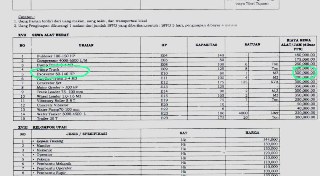 Namun dalam Rencana Anggaran Biaya (RAB) kegiatan normalisasi saluran pada desa lae riman tersebut, sewa excavator mencapai Rp 400.000 per jam. Sehingga total sewa excavator pada kegiatan itu mencapai Rp 40.400.000 untuk sewa excavator selama 101 jam.