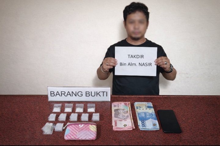 Selain sabu, polisi juga menyita 100 plastik klip kosong, sejumlah uang tunai, satu unit telepon genggam, serta barang lain yang diduga berkaitan dengan aktivitas narkotika.