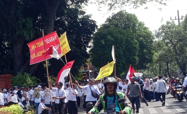 Ratusan Kades dan Perangkat Desa Mojokerto Demo Tolak Pemangkasan ADD 2026