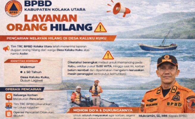 BPBD Kolaka Utara Lakukan Koordinasi Pencarian Nelayan Hilang di Perairan Tiwu