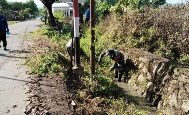 Tak Kenal Libur, Personil Koramil1421-09/Lk Kalmas Gotong Royong Melaksanakan Karya Bakti