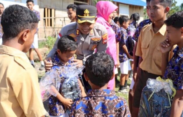 Polri Peduli Pendidikan: Polres Matim Salurkan 100 Paket Bantuan untuk Pelajar di Borong