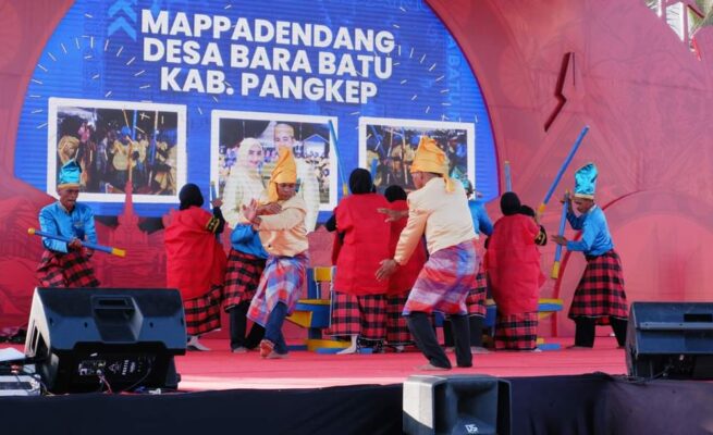 Desa Bara-Batu Kembali Dipercayakan Dinas Dikbud Pangkep Menyajikan Tari Mappadendang di CPI Makassar