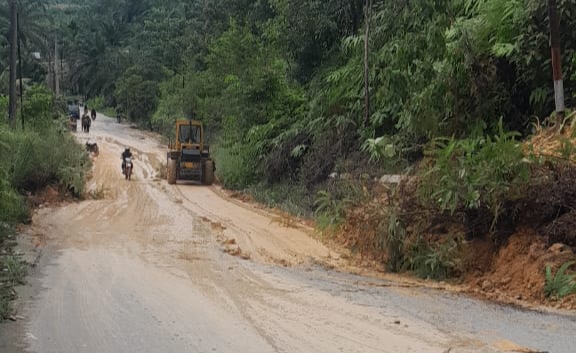 Untuk mempermudah kembali akses masyarakat, PT Nafasindo Aceh Singkil melakukan pembersihan material longsor di lokasi itu.