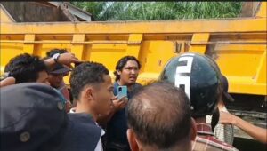 “Oknum tersebut tiba-tiba muncul dan meminta sopir truk berwarna orange untuk jalan, padahal sudah di larang. Gerakan itu langsung memicu amarah massa yang telah sejak awal melarang kendaraan perusahaan melintas,” tutur Boas.