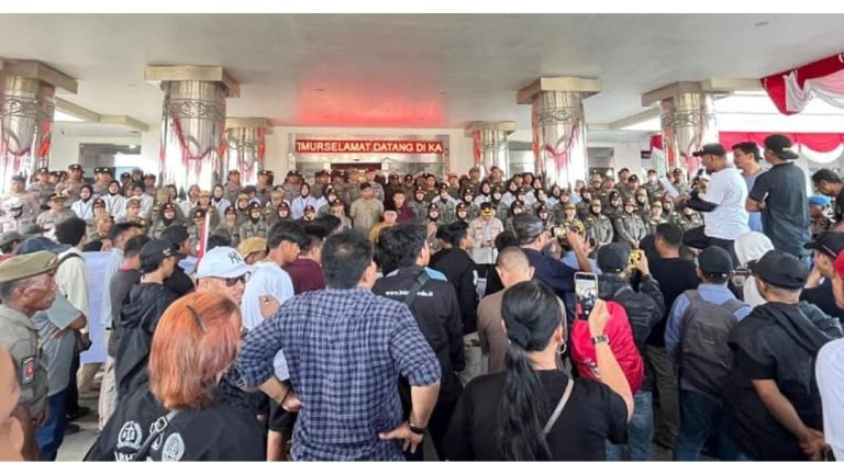 Sangatta, TrenNews.id – Puluhan warga yang tergabung dalam Satuan Aksi Masyarakat Kutim Menggugat menggelar unjuk rasa di halaman Kantor Bupati Kutai Timur (Kutim), Selasa (28/10/2025). Massa menuntut evaluasi menyeluruh terhadap Tim Anggaran Pemerintah Daerah (TAPD) serta pencopotan sejumlah pejabat kunci yang dinilai gagal menjalankan agenda pembangunan daerah.